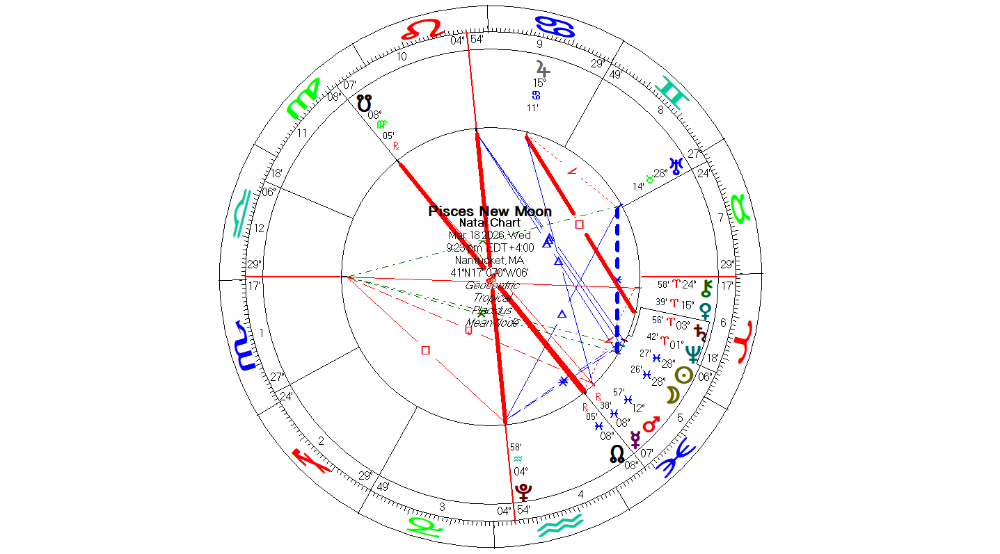 The Pisces Moon joins the Sun tomorrow night at 9:23 pm in the last degree of this Mutable Water sign. This chart is about adaptation and adjustment particulary as it relates to our feelings. Pay attention to intuitive or creative nudges. Is there an unfinished project lying around that you'd like to finish... because this is the time to put fresh eyes on it!